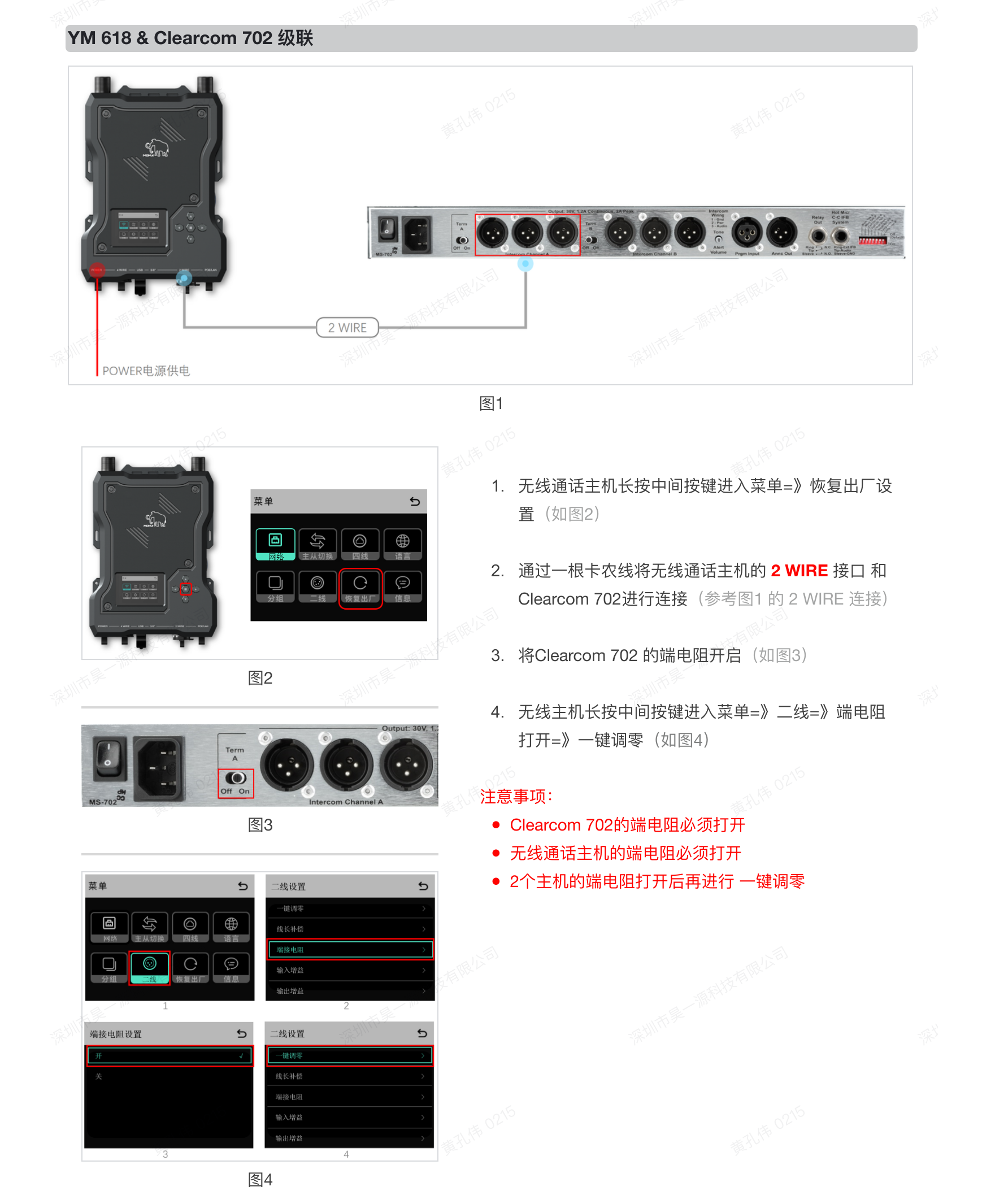 YM 618 & Clearcom 702 级联