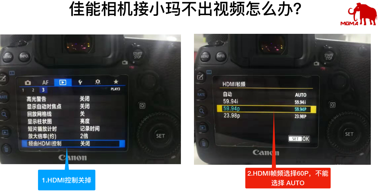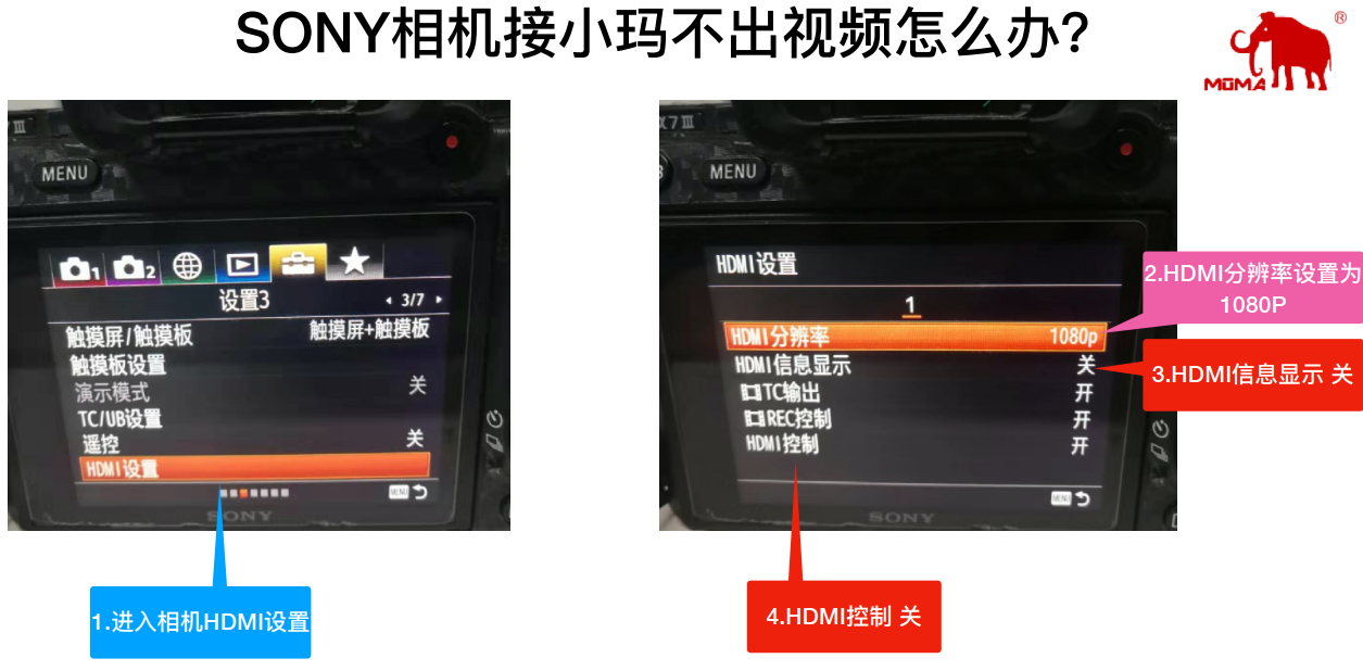发射器显示NO VIDEO ,首先考虑更换连接线和电池;其次进行相机的设置,把HDMI输出设置成1080,不要设置成AUTO:索尼